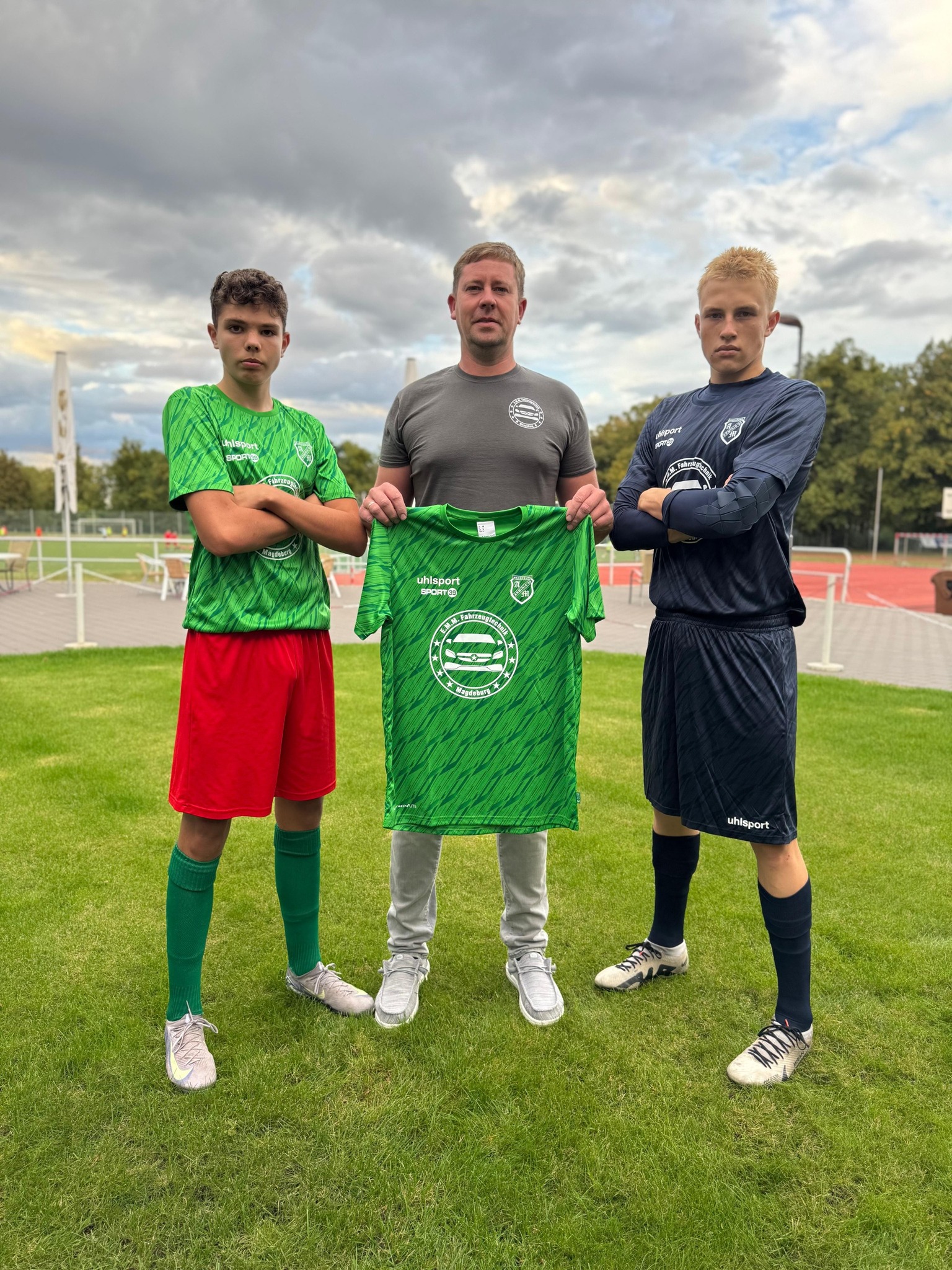 Unsere U19 des SV Arminia freut sich über brandneue Trikots – gesponsert von E.M.M. - Fahrzeugtechnik Magdeburg.